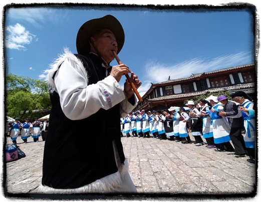 전통복장을 입고 장을 보는 나시족 할머니, 어린 손자와 손잡고 걷는 이족 여성들…...